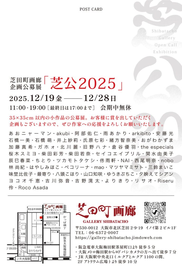 芝田町画廊さんが企画の公募展『芝公2025』に参加しますのでご案内をいたします。